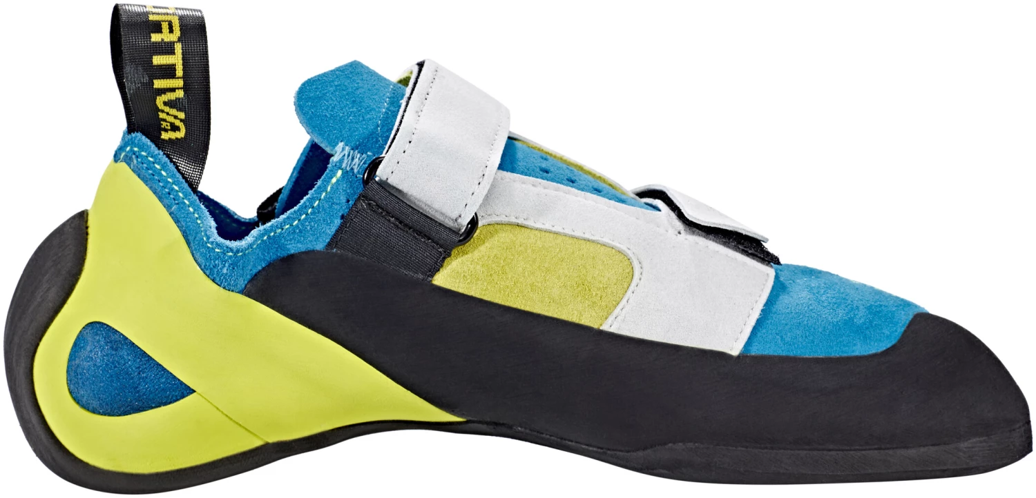 Un chausson à fermeture par double velcros, conçu pour les débutants et les grimpeurs recherchant un chausson confortable et rapide à chausser.