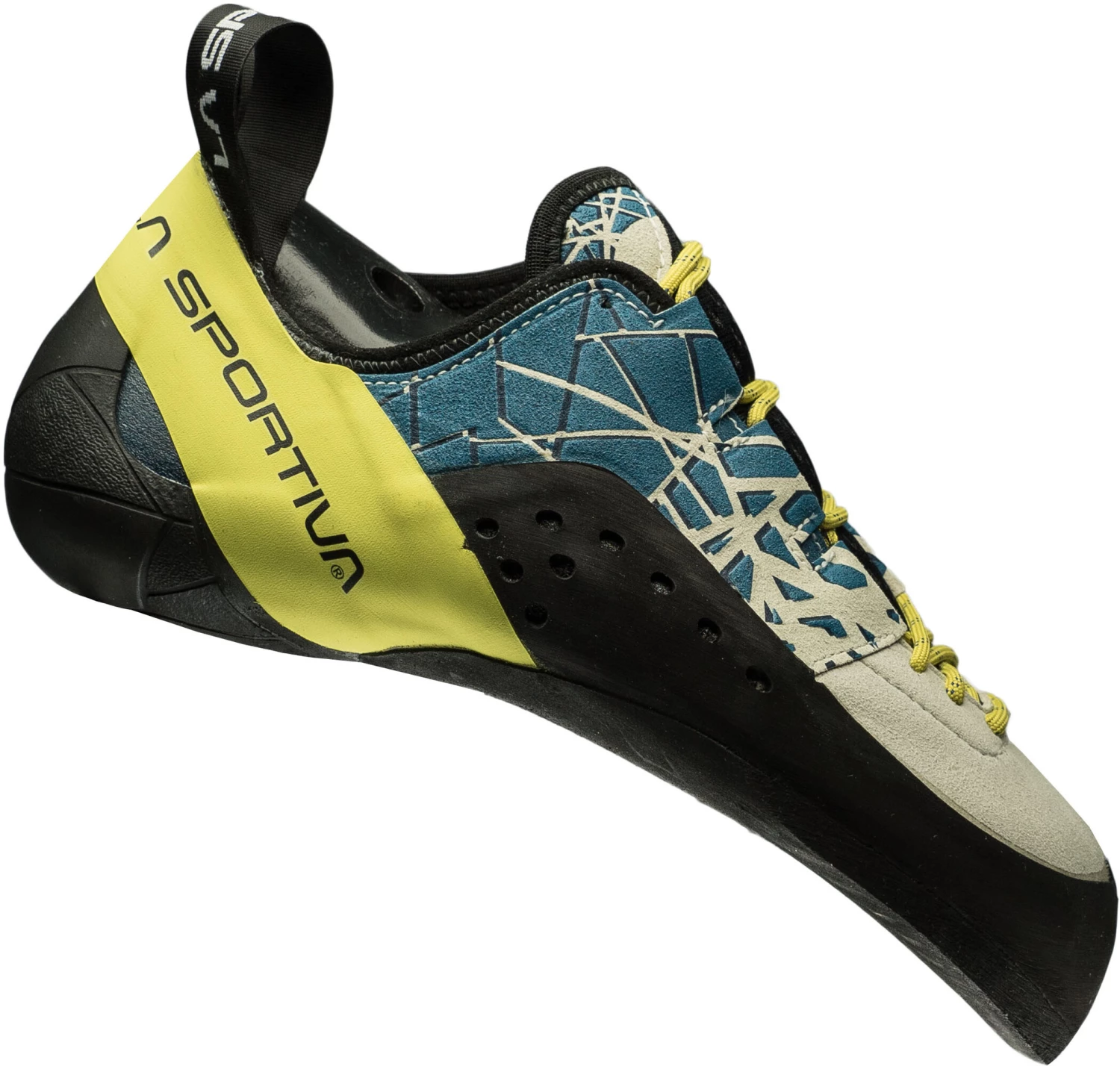 Chausson d’escalade versatile et performant, conçu pour utilisations outdoor en falaise, parois surplombantes, favorise les tallonages grâce au système de construction S-Heel.
