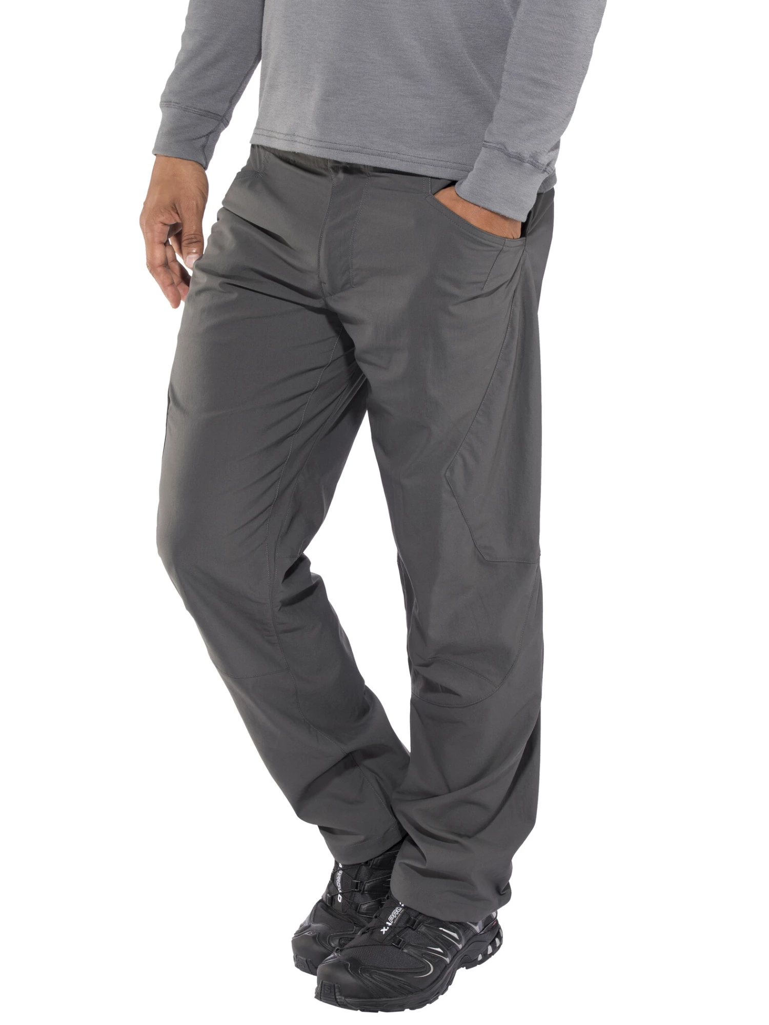 La paroi de vos rêves, le challenge de votre vie, s’élève devant vous. Qui va grimper en tête ? Pierre, papier, ciseaux, en trois manches. C’est votre jour de chance : à vous l’honneur ! Notre RPS Rock Pants procure une liberté de mouvement absolue dans les voies les plus techniques. Fabriqué dans une matière stretch en nylon (désormais recyclé) et polyester, ce pantalon d’escalade synthétique est le plus léger de notre gamme. Minimaliste, il présente une coupe préformée avec entrejambe à soufflet ; la taille, munie d’une braguette zippée, s’ajuste désormais uniquement à l’aide de notre système de fermeture réglable OppoSet innovant, épuré et amélioré (nous avons éliminé les passants de ceinture). Un cordon élastique avec bloqueur, extrêmement discret, permet d’ajuster les bas de jambe. Deux poches fourre-tout doublées en mesh, deux poches arrière qui renforcent l’assise et une poche zippée sur la cuisse droite, sous la sangle du baudrier. La matière est traitée avec un apprêt déperlant durable (DWR).