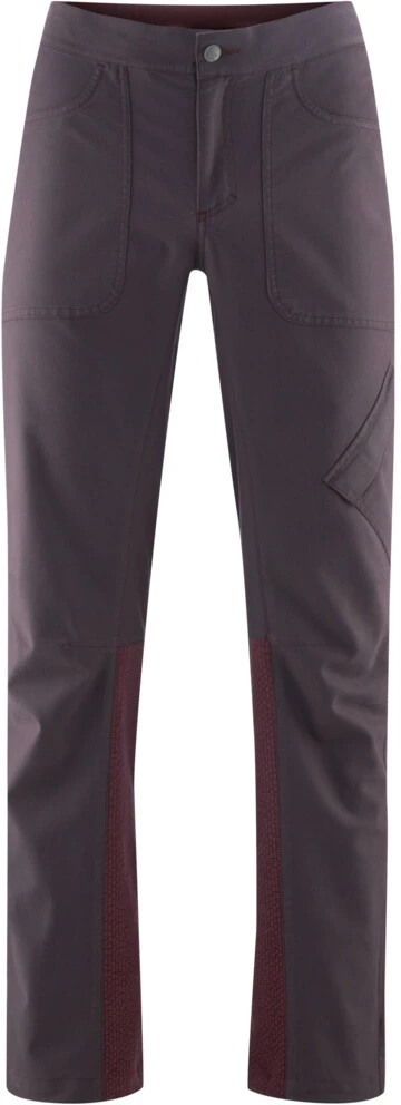 Pantalon d’escalade fonctionnel fabriqué à partir d’un mélange durable de coton bio et de polyester recyclé. La taille élastique côtelée avec cordon de serrage et les pinces au niveau des genoux assurent une coupe confortable. Deux poches plaquées à l’avant, une poche arrière et une poche topo avec fermeture velcro sur la cuisse complètent l’ensemble.